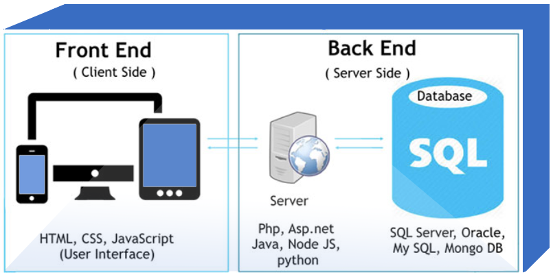 Full stack development refers to the end-to-end application software development, including the front end and back end. The front end consists of the user interface, and the back end takes care of the business logic and application workflows.