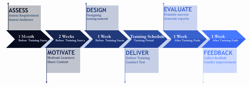 While delivering the training, we follow the training plan along with the timeline that includes a schedule, the itinerary, and important milestones. A mix of subject expert trainers are engaged in delivering the training. The whole training programme is executed with a balanced session of theoretical and practical. Rewards on active participation in training is another value added step we have taken. As a result, the more the candidates enjoy the training program, the more they are likely to learn and apply their knowledge in real-time.